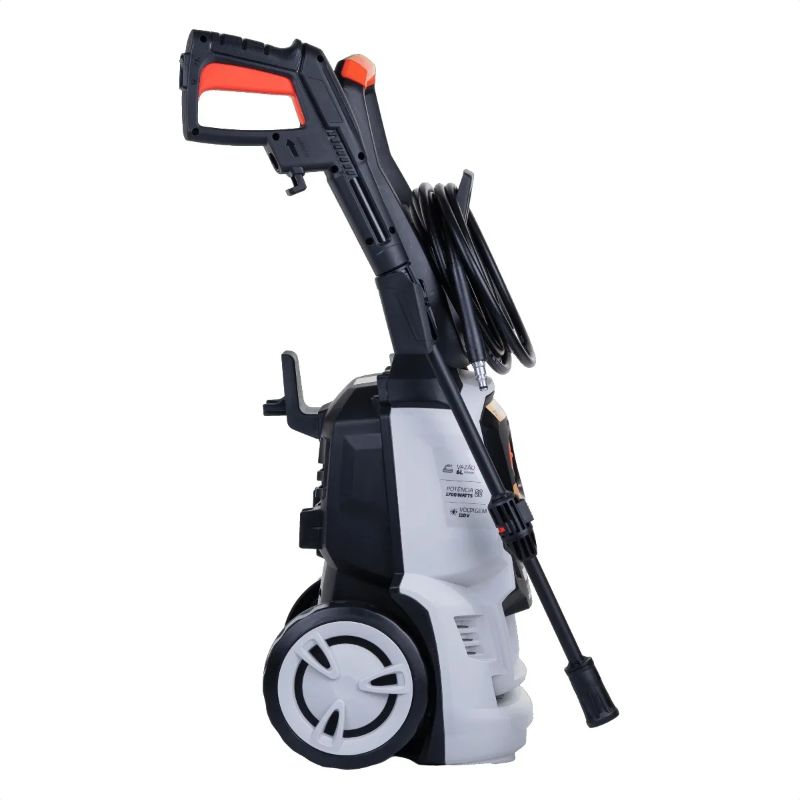 8. Equipado com mangueira e cabo elétrico de 5 metros, garantindo maior alcance e praticidade.
