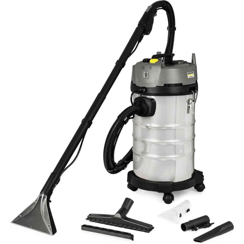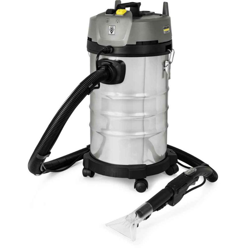 A Extratora de carpetes e aspirador 20 Litros 1700 watts Puzzi 4/20 da Karcher aplica a solução química e recolhe a água suja, sem a necessidade de esfregar!